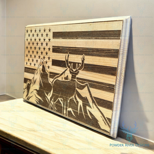 Buck American Flag Wood Sign