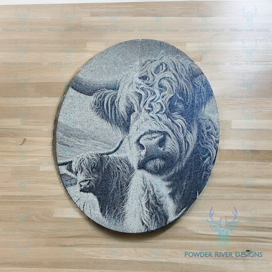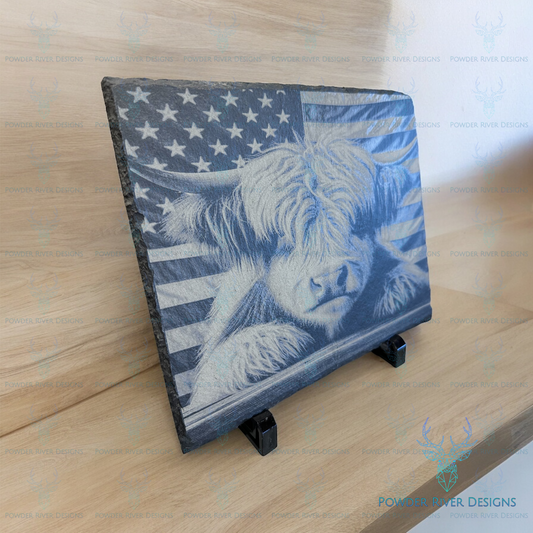 Highland Cow Slate Picture w/Stand