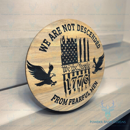 Not Descended from Fearful Men Wood Sign