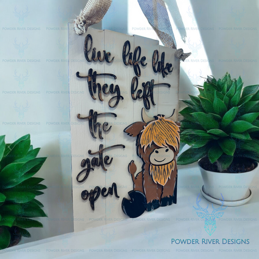 Live Like the Gates are Open Highland Cow Sign