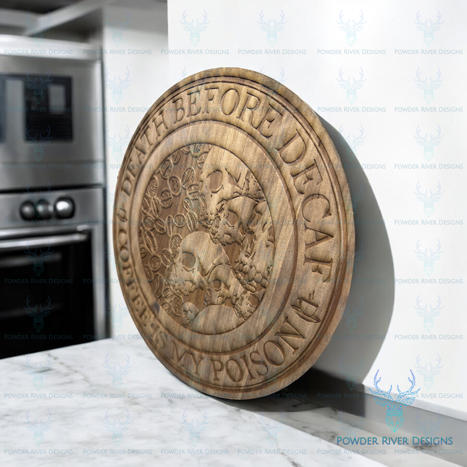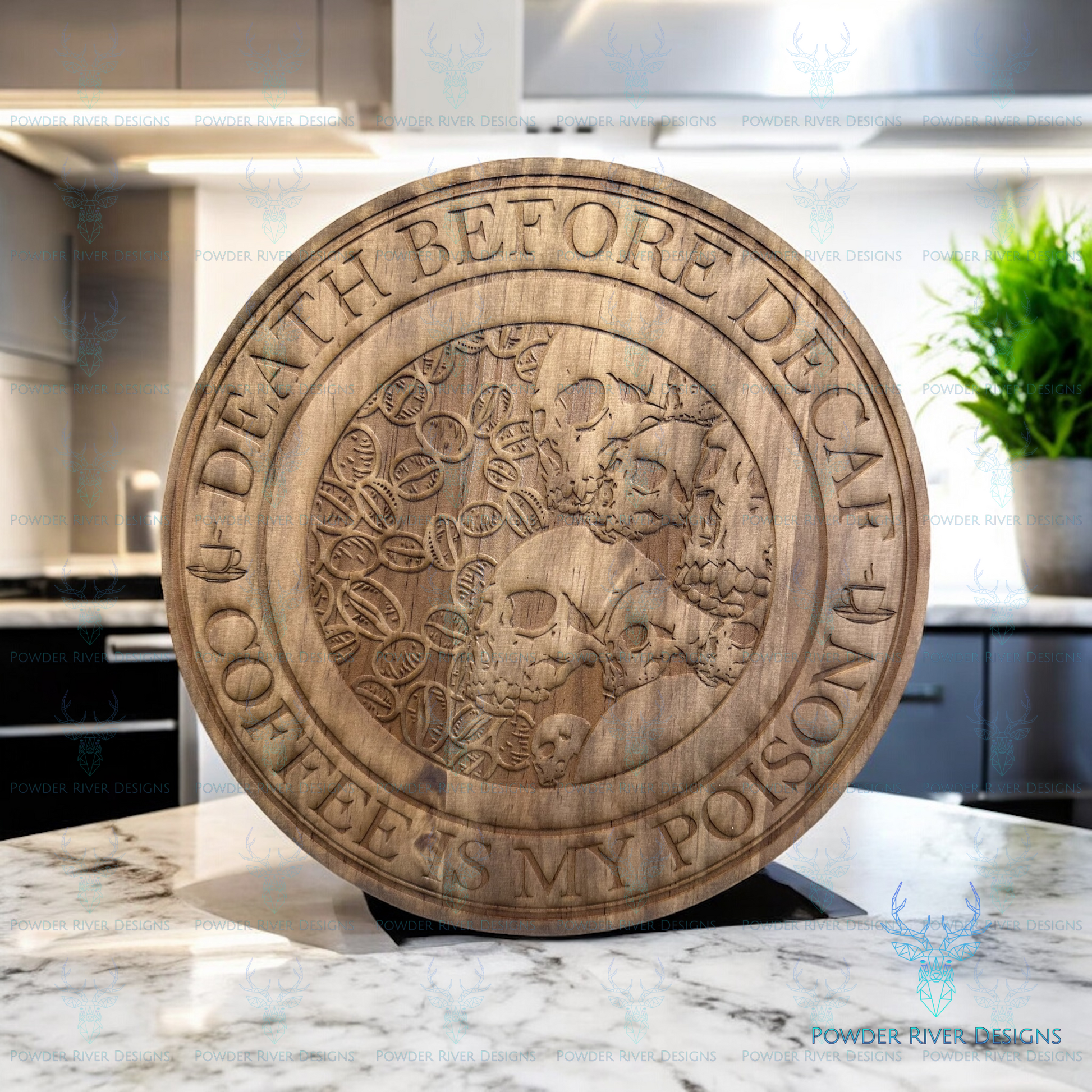 Indulge your caffeine obsession and tickle your funny bone with our Death Before Coffee Wood Sign. Lovingly crafted from premium wood and laser engraved for a crisp finish, this round sign makes the perfect addition to any coffee lover's collection. Sealed for long-lasting durability.