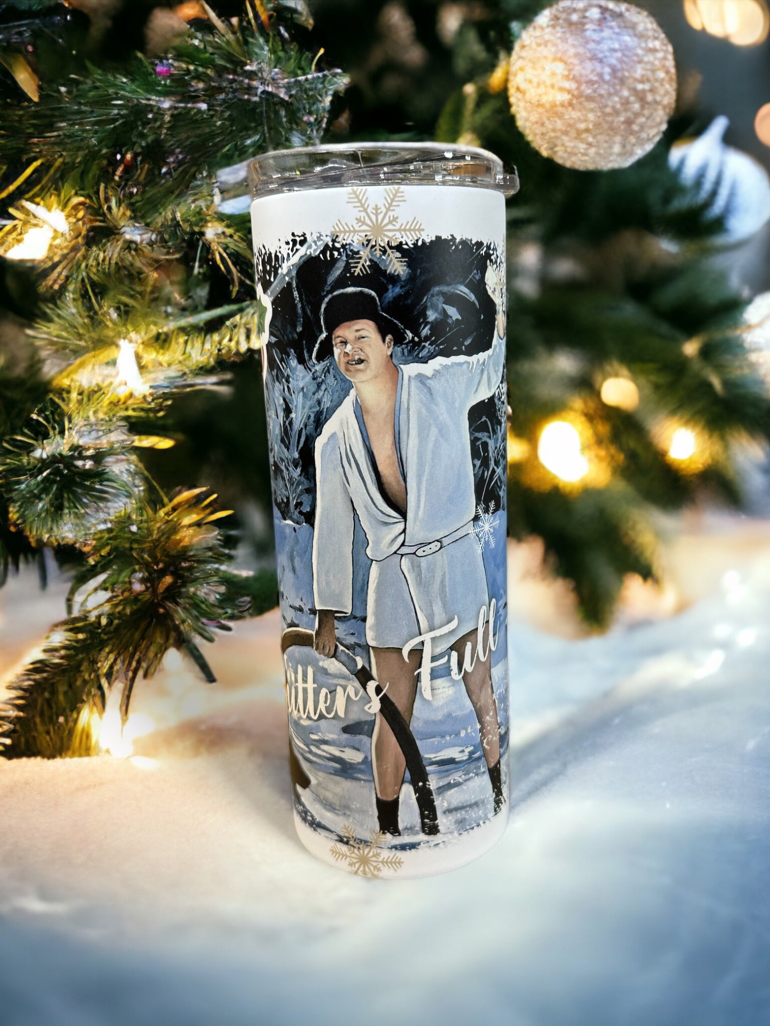 Celebrate the classic holiday movie Christmas Vacation with this 20 oz. tumbler featuring Cousin Eddie with his famous saying. Perfect for anyone who loves the movie, it's a hilarious and unique gift everyone can enjoy!